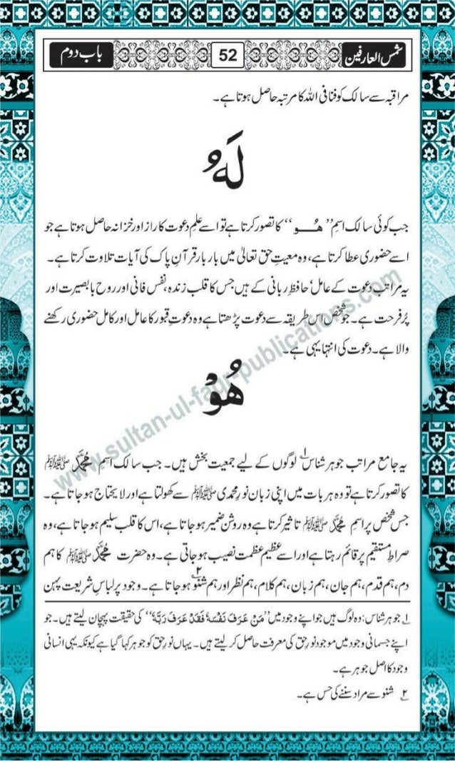 The opposite is however true. This is an invaluable treasure for saints and devotees from all the spiritual orders and from all the religions. English Translation B ook size: Through this book he can directly experience and assimilate spiritual energy from Hazrat Sultan bahu ra. The difference between a true and materialistic devotee is explained. Detailed effects and results of different types of spiritual recitations and rewards have been bzhu.